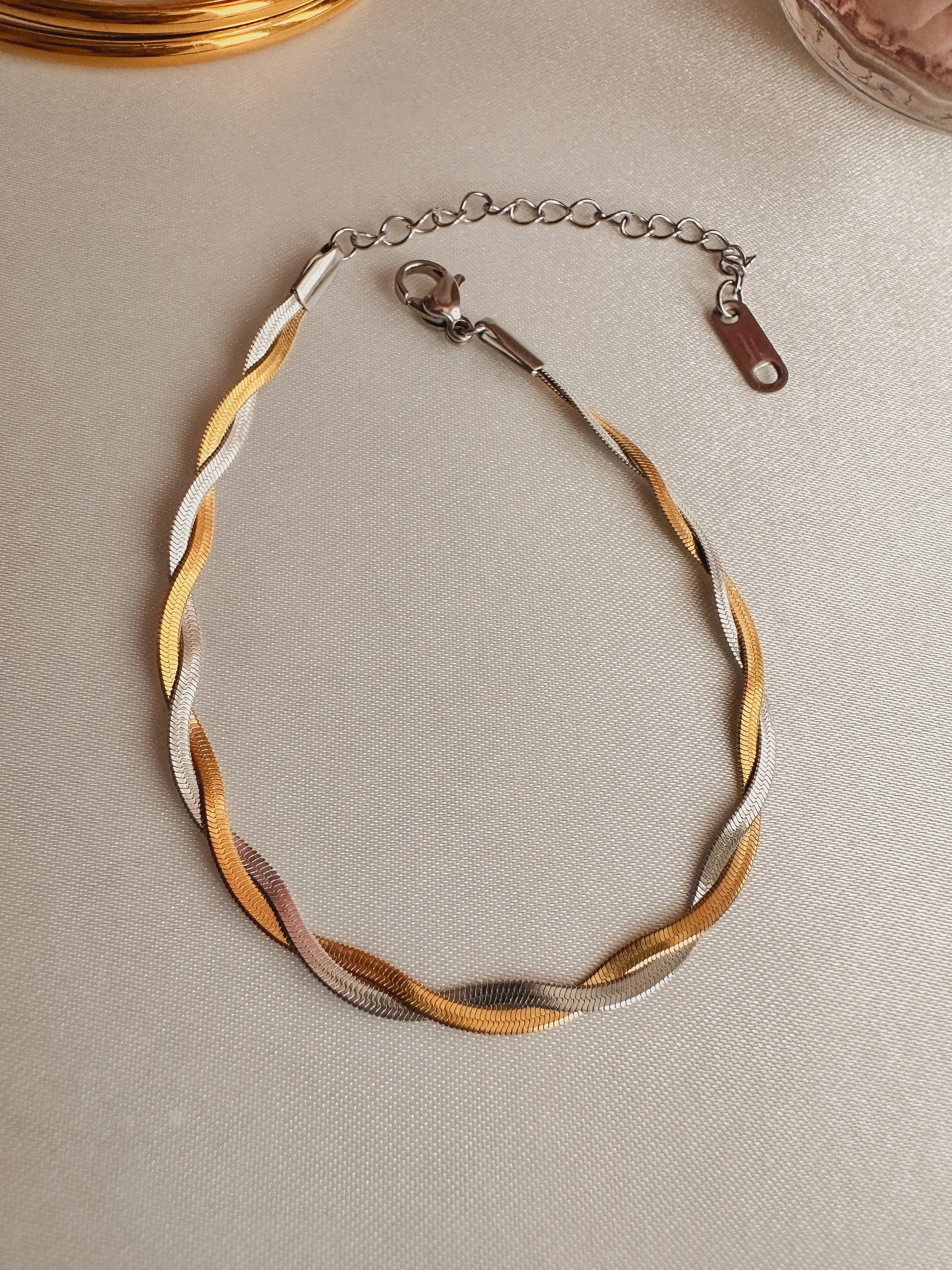 Enhance your style with our elegant Infinity bracelet made of stainless steel, featuring a perfect combination of gold and silver. Stay on-trend and elevate your outfits with this versatile accessory.