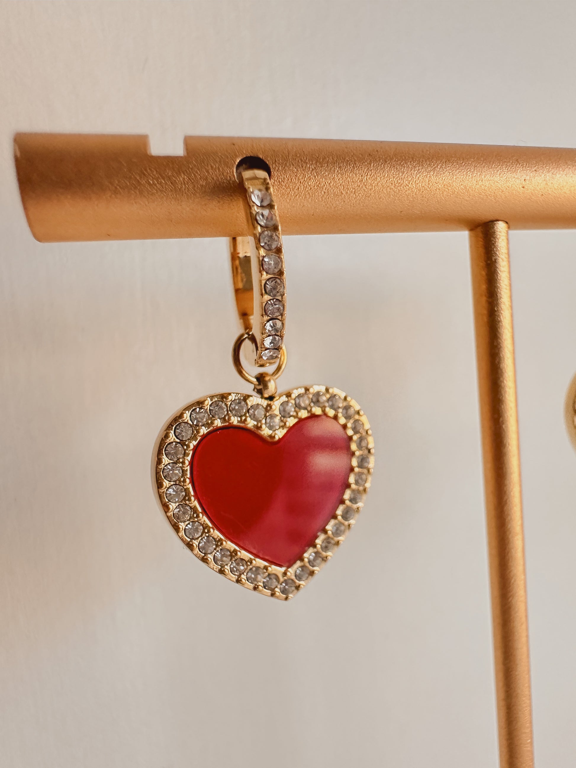 These beautiful heart-shaped earrings, adorned with delicate zirconia, shine with elegance, making them the perfect accessory for any occasion. Their versatile design allows you to wear them in two ways: with the heart or just the sparkling hoop. Made of stainless steel, they offer great durability, are hypoallergenic, and, best of all, waterproof.