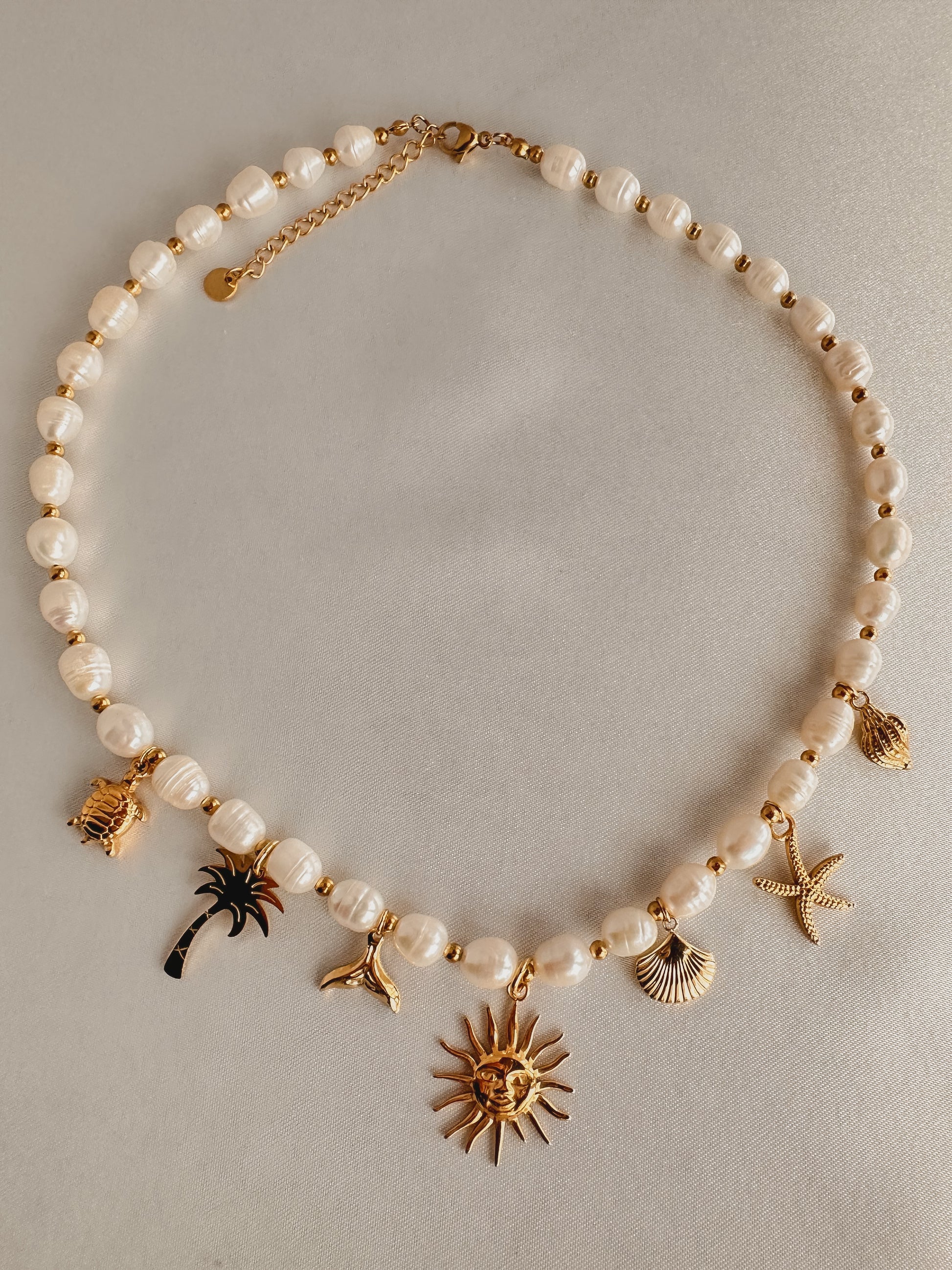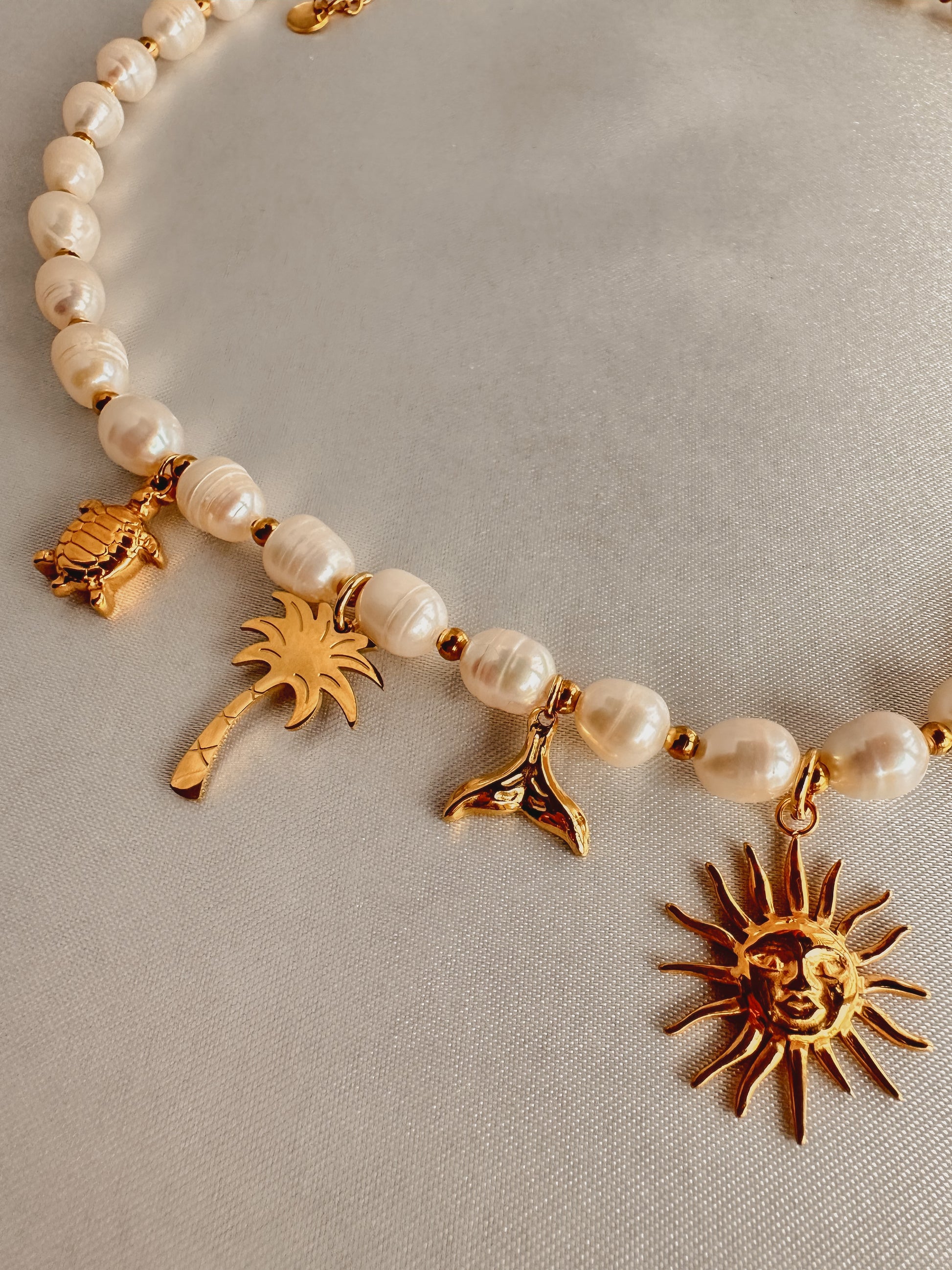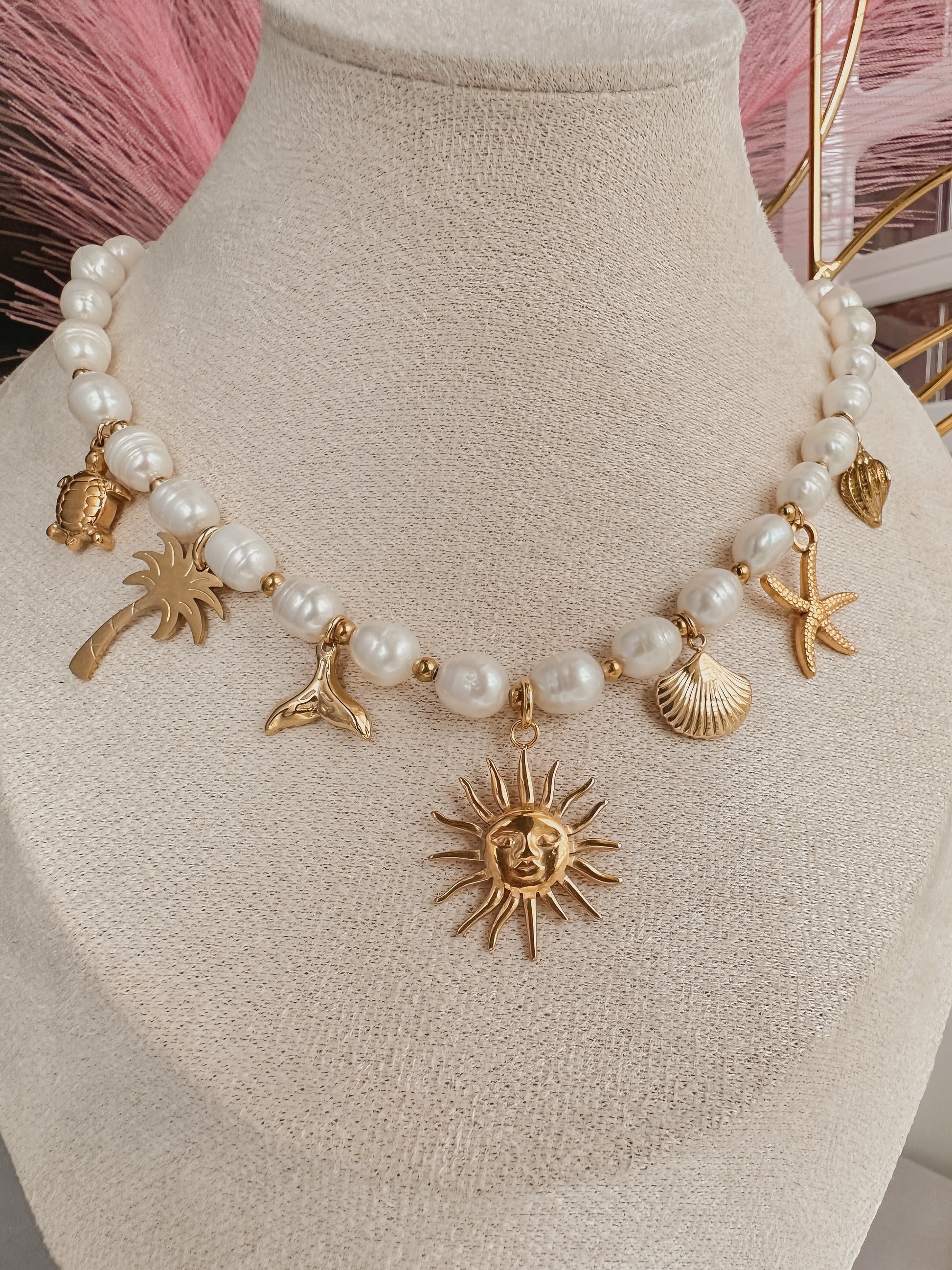 More than just a necklace, TropiGlam is a true expression of style. Its design combines the timeless elegance of freshwater pearls with the shine of stainless steel charms, achieving a perfect balance between freshness and sophistication. Inspired by the sea, yet made to shine on any occasion, this accessory is not just for summer: it’s a versatile piece that elevates any look, from casual outfits to more elegant ones. Additionally, its water resistance and durability make it a must-have for those who love fashion without seasonal limits.